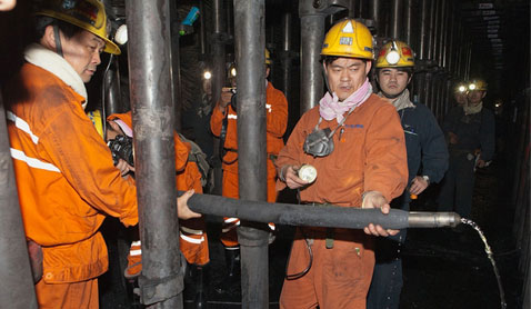 煤層注水是指在開采之前利用鉆孔向煤層注入壓力水。預先濕潤煤體,可以降低煤塵生成量。將水均勻地注入煤體,其水分達4%以上,可以防止突出發(fā)生。水改變了煤的力學性質,使應力分布均勻化,彈性能釋放速度變小,功率降低,沼氣排放速度降低,比初放時可降低90%。