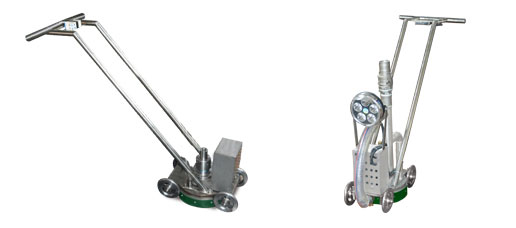 漢諾公司的平面清洗裝置中,為用戶提供了清洗手推車設(shè)備。手推車底部裝有小輪,可以很容易地用手推著走,手推車配有小型電動機為底部旋轉(zhuǎn)噴盤提供動力,依靠旋轉(zhuǎn)射流的旋轉(zhuǎn)動力,可以使清洗效率得到更充分的發(fā)揮。